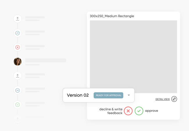 No more “I thought that was the final one.” Clients approve via a secure preview link — locked to the exact version. One thread of feedback, per asset, per version. No screenshots, no email chains.